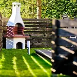 Die 8-Zimmer- Domki Na Brackiej verfügt über private Parkplätze und eine Terrasse mit Aussicht auf den Garten.